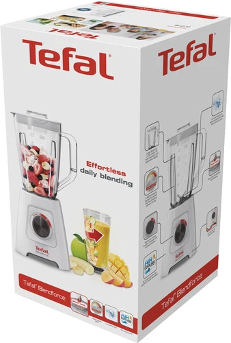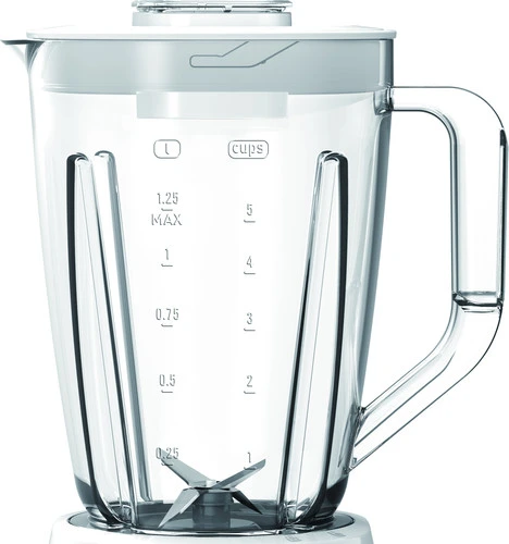De kunststof blenderkan is licht van gewicht.