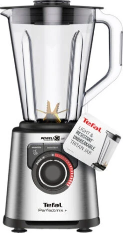 De Tefal PerfectMix+ BL82AD heeft 6 mesjes, zodat ingrediënten in een mum van tijd worden gemixt tot een glad geheel. Er blijven geen stukjes achter en harde ingrediënten mixt de blender zonder moeite. Crush bijvoorbeeld ijsklontjes fijn voor een ijskoude smoothie of mix een smoothie met noten. De tritan blenderkan heeft de stevigheid van een glazen kan en het lichte gewicht van een kunststof kan. De blenderkan is bestand tegen warme ingrediënten tot aan 80 graden Celsius. Handig, voor bijvoorbeeld het maken van warme saus of babyvoeding. Je stelt de snelheid traploos in met de draaiknop of je kiest voor één van de 3 automatische programma’s. Na gebruik reinig je de blender met de schoonmaakstand of in de vaatwasser.