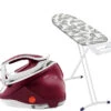 Je strijkt snel en krachtig met de Tefal Pro Express Protect GV9220. Dankzij de stoomdruk van 7,5 bar en een continue stoomafgifte van 135 gram per minuut strijk je een berg wasgoed gemakkelijk weg. De stoomgenerator heeft een krachtige stoomstoot van 550 gram per minuut. Hierdoor strijk je ook hardnekkige kreukels uit stugge spijkerbroeken. Tijdens het strijken vul je het afneembare waterreservoir eenvoudig bij, zonder dat je de stoomgenerator meeneemt naar de kraan. Wil je in de tussendoor een stapel wasgoed vouwen? Dan schakelt de stoomgenerator automatisch uit wanneer je `m even niet gebruikt. Dankzij de verticaal stomen functie stoom je ook je jurk nog even kreukvrij voor je avondje uit. Hang het kledingstuk op een hanger en blaas stoom op de stof. Kind kan de was doen.