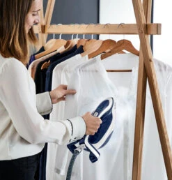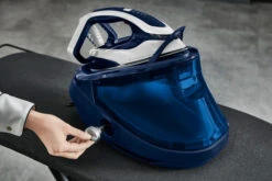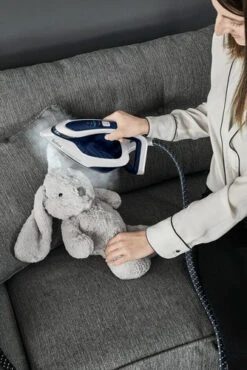 De stoomstoot van 700 gram per minuut rekent snel af met hardnekkige kreukels.