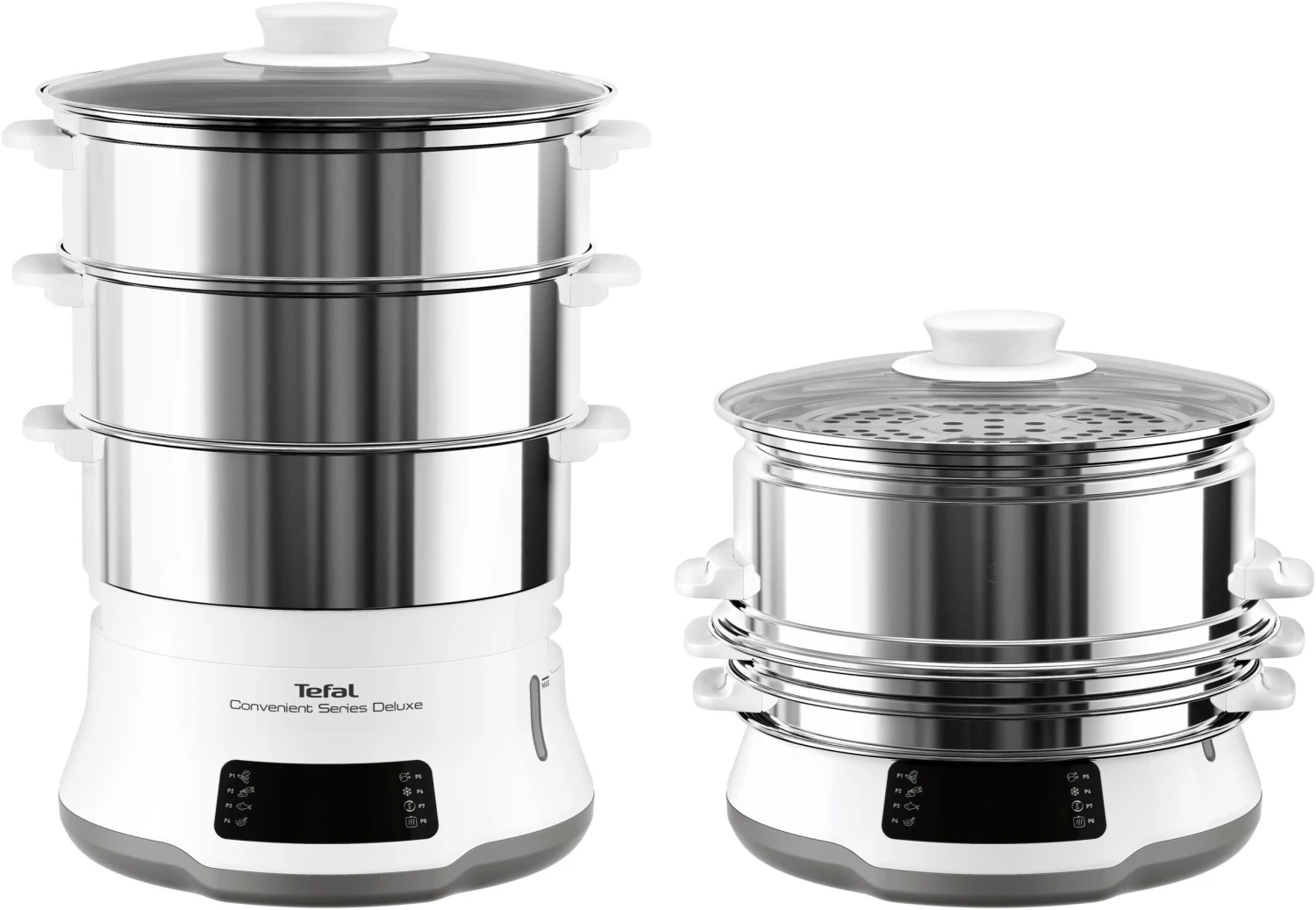 Tefal Stoomoven VC502D Convenient Series Deluxe Eenvoudige Touchscreen, 8 Programma’s, Garen Op 3 Niveaus, Container Van Edelstaal, Duurzame Kwaliteit, Gezonde Bereiding