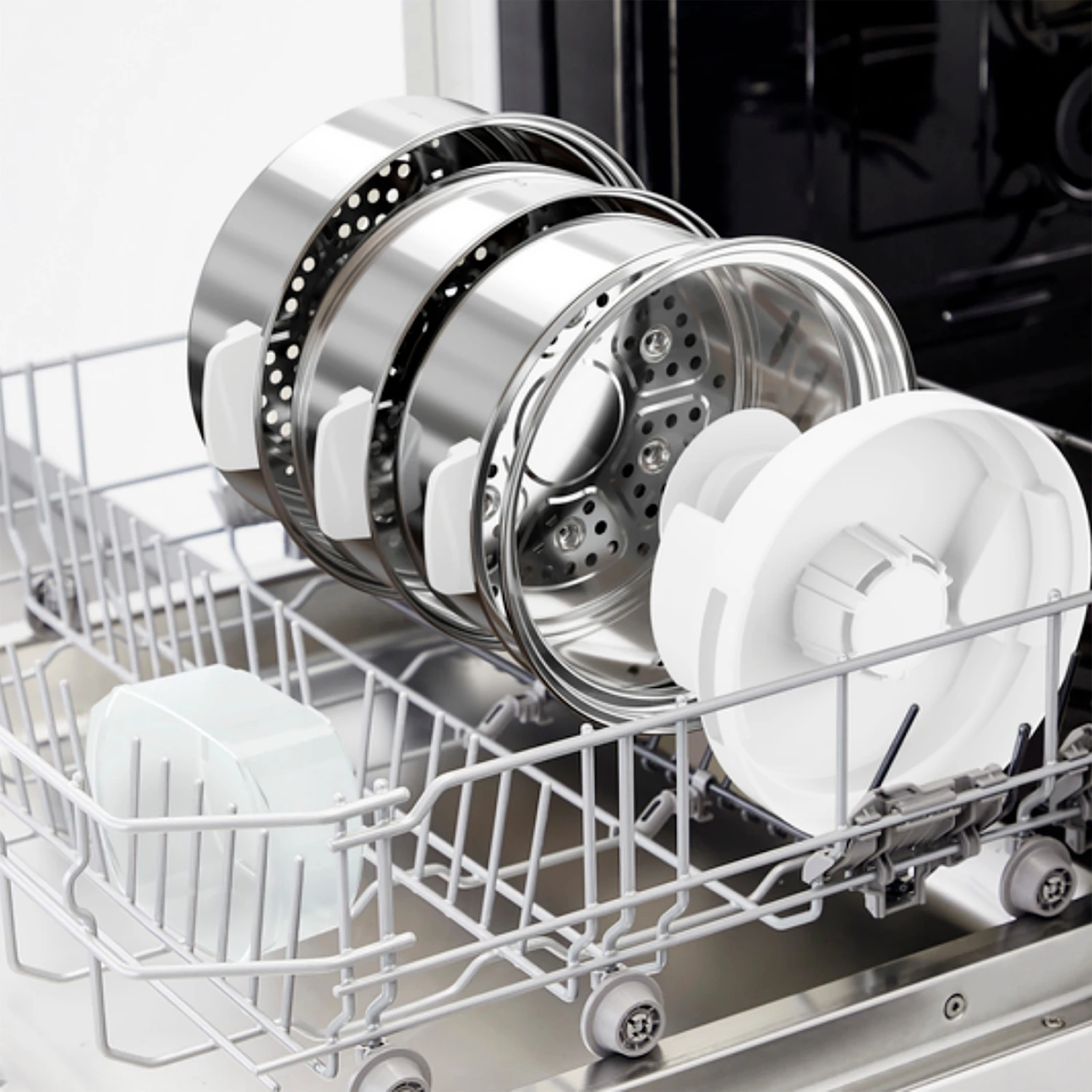 | Overige voordelen | Met het meervoudige design kun je een drie-gangen-menu in een run bereiden – efficiĂ«ntie dankzij 3-voudig stomen. Probeer samen met je gezin een grote verscheidenheid aan lekkere recepten uit, want er staat een receptenboek om te downloaden voor je klaar. Met een omzichtige garing bij 100°C blijven de voedingsstoffen van je maaltijd behouden. Ook voor eenvoudig opbergen is gezorgd, dankzij een ruimtebesparend opbergsysteem met stapelbare containers. Zo vindt de stoomoven je keukenkasten of provisiekasten optimale ruimte., 5 voorinstellingen per ingrediĂ«nt: zachte groente, harde groente, vis, rijst/groente, gevogelte) en voor het ontdooien, opwarmen en warmhouden |