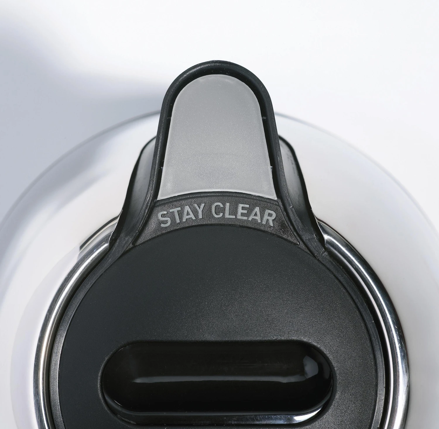 Het succesmodel in een nieuw roestvrij staal-design. Bijzonder comfortabel te bedienen dankzij de 360°-voet, de afgedekte verhittingsspiraal, de uitneembare kalkfilter en de aan-uitschakelaar op de deksel. Voor schoon en gezond water met Stay Clear-watertuit. <br><br><b>Speciale eigenschappen: </b><br><ul> <li>Stay Clear-watertuit: beschermt tegen stof en onzuiverheden voor schoon en gezond water, deksel opent automatisch bij het uitgieten van het water</li></ul><b>Overige specificaties: </b><br><ul> <li>Draadloos: 360°-voet</li><li>Blinde verhittingsspiraal: afdekking van edelstaal</li><li>2 waterniveauaanduidingen: voor rechts- en linkshandigen</li><li>Droogkook-/oververhittingsbeveiliging: gebruik zonder water niet mogelijk</li></ul><b>Kenmerken en functies: </b><br><ul> <li>Inhoud (liter): 0,8</li><li>Temperatuurkeuze: nee</li><li>Geheugenfunctie: nee</li><li>Waterniveau-aanduiding: ja</li><li>Waterfilter: ja</li><li>Automatische veiligheidsuitschakeling: ja</li><li>Oververhittingsbeveiliging: ja</li><li>Droogkookbeveiliging: ja</li><li>360-gradenvoet: ja</li><li>Snoeropwikkeling: ja</li><li>Antislipvoetjes: ja</li><li>Aan-uitschakelaar met controlelampje: ja</li><li>Ingebouwd verwarmingselement: ja</li></ul><b>Extra functies: </b><br><ul> <li>Stay Clear-watertuit, afsluitbare deksel</li></ul><b>Technische gegevens: </b><br><ul> <li>Vermogen (W): 2200</li><li>Materiaal behuizing: geborsteld edelstaal</li><li>Afm. apparaat hxbxd (cm): 19,0 x 23,0 x 18,0</li><li>Kleur: geborsteld edelstaal / zwart</li><li>Gebruiksaanwijzing in: DE, EN, DA, FI, FR, NO, NL, SV</li></ul>