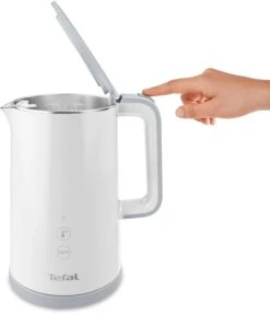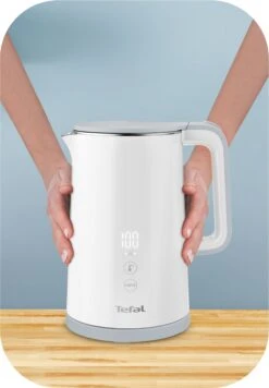 | Overige voordelen | Geniet van warme dranken op precies de juiste temperatuur met deze snoerloze, moderne, intuïtieve waterkoker, perfect voor alle smaken. Met een geïntegreerd digitaal display dat de watertemperatuur in real time weergeeft, biedt de waterkoker vijf verschillende temperatuurinstellingen van 40°C tot 100°C – perfect om water te koken met een simpele aanraking. De dubbelwandige constructie houdt de warmte binnen, terwijl de buitenkant koel blijft voor optimale veiligheid. Andere handige functies zijn een 30-minuten-warmhoudfunctie zodat jouw drankjes altijd op het juiste moment klaar zijn, een automatische deksel-open knop voor gemakkelijk vullen, een 360° basis en een automatische uitschakeling voor jouw veiligheid. En met zijn grote capaciteit van 1,5 liter dekt hij al je behoeften aan warme dranken. |